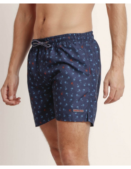 El bañador de hombre de Antonio Miro con un estampado de palmeras en color marino es perfecto para el verano.
