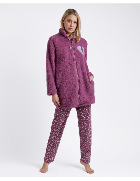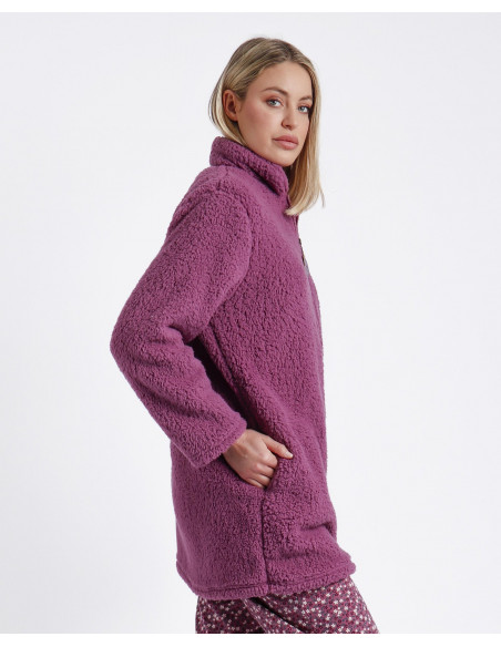 * Bata de tejido especial borreguito muy calentito, en color morado con bolsillos.