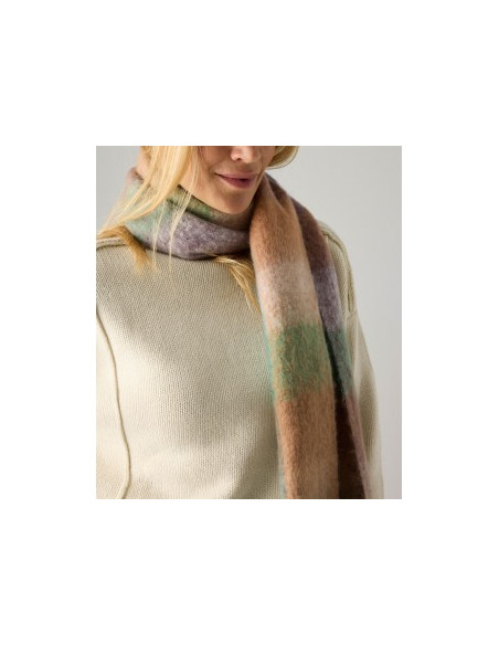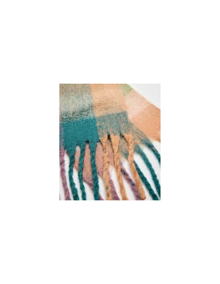 Esta bufanda presenta un estampado a cuadros que combina una variedad de colores vivos y llamativos, agregando un toque de energía y vitalidad a cualquier conjunto invernal.