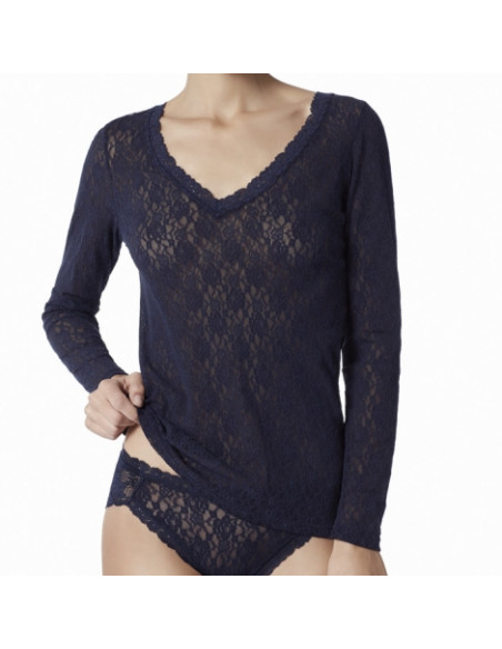 CAMISETA JANIRA MANGA LARGA CUELLO PICO BLONDA NEGRO