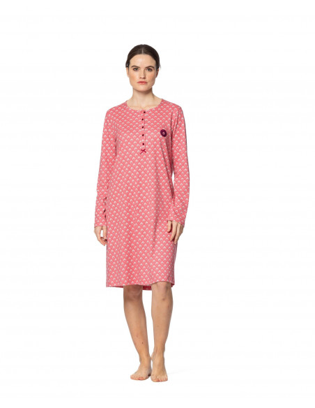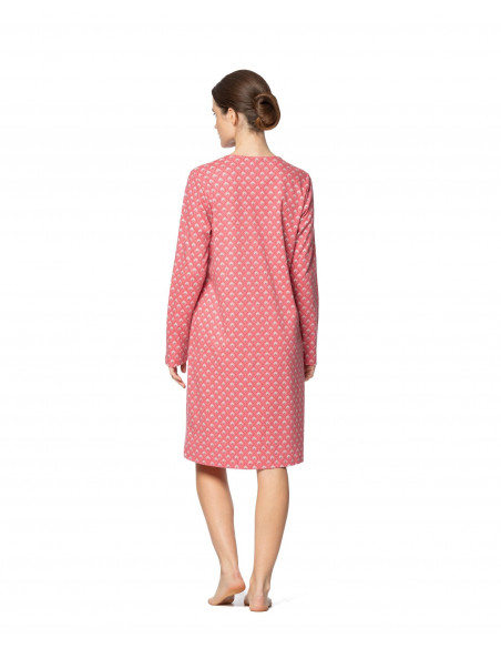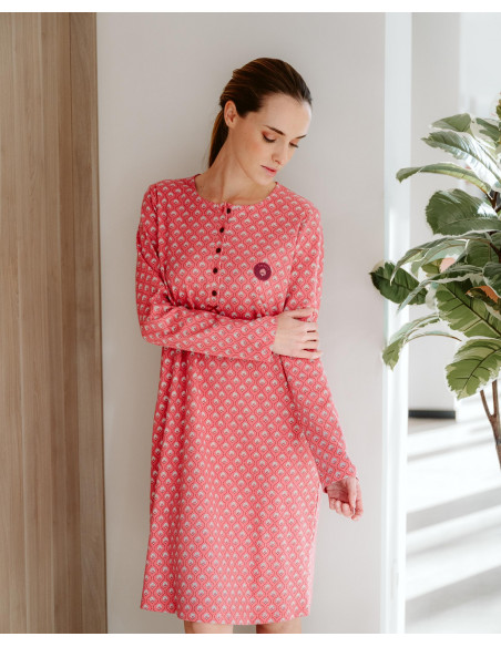 Camisola de mujer interlock estampada con tapeta y manga larga.