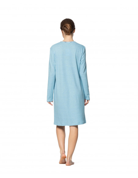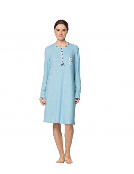 Camisola de mujer de manga larga, combinada con corazones de vivo en bolsillo y botonadura.