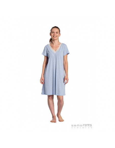 CAMISOLA SEÑORETTA CUELLO PICO BLONDA AZUL CORAZONES