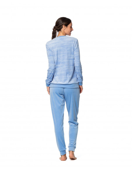 Pijama de mujer velour con estampado de oso, cuello redondo y puños en mangas y pantalón.