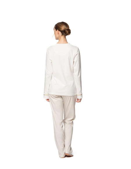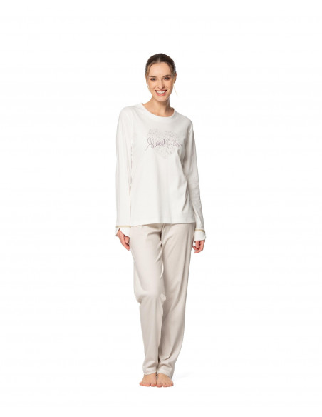 Pijama de mujer con cuello redondo y estampado sweet con pantalón estampado de espiga.