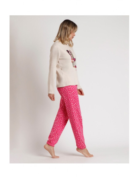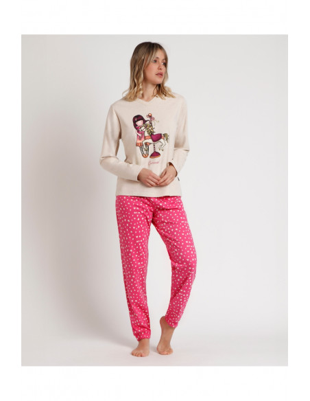 * Pijama de punto de algodón, de manga larga, cuello pico y pantalón largo.