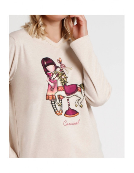 * Camiseta de punto interlock vigoré, de color beige, con posicional estampado con detalles en glitter, personalizada de la marca Santoro.
