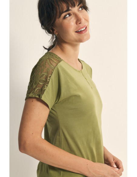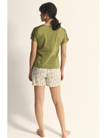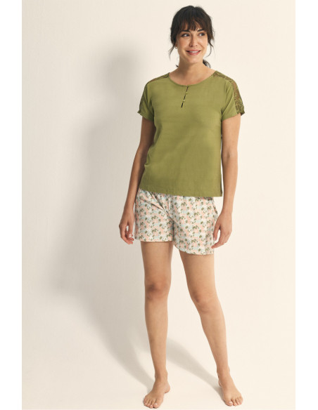 PIJAMA PROMISE PANTALÓN CORTO ESTAMPADO CAMISETA CAQUI