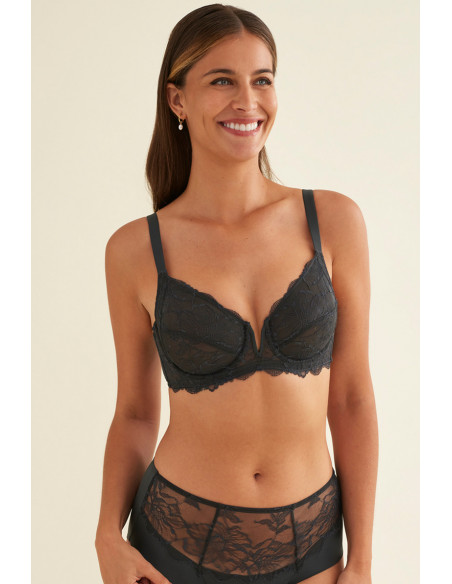 SUJETADOR SIN RELLENO CON AROS Y ENCAJE A TONO