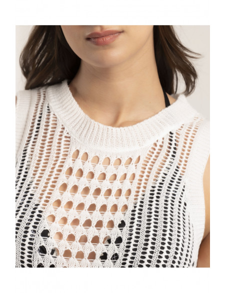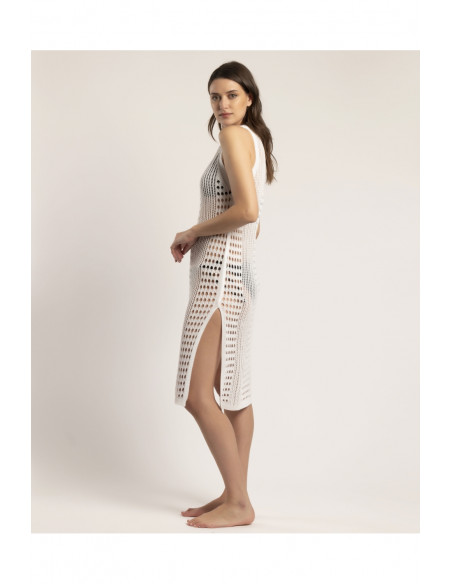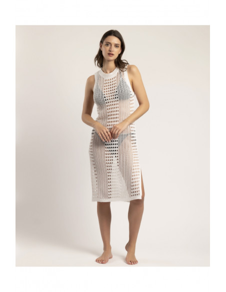 * Vestido de playa para mujer, de punto calado, con cuello redondo.