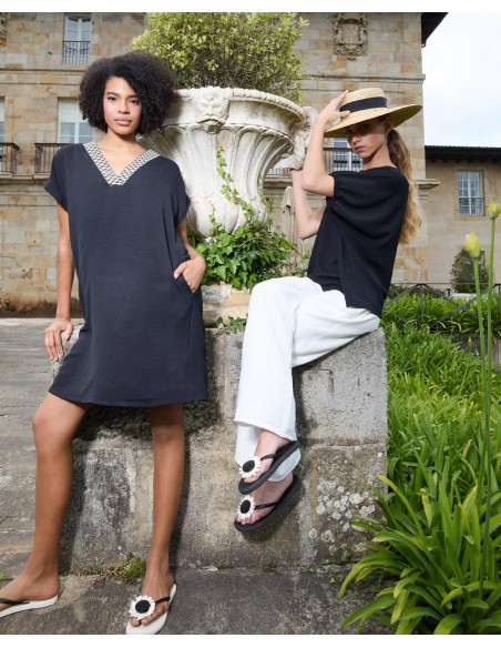 Su diseño amplio y ligero permite una gran libertad de movimiento, ideal para los días más calurosos del año. Confeccionado en poliéster de alta calidad, garantiza un tacto suave y una caída fluida.